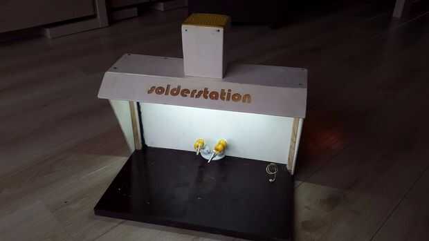 Con un poco de inspiración de instructables he decidido hacer una estación de soldadura. He escogido este objeto porque soldadura bastante y no me gusta que inhalan el humo asqueroso. Es por eso que quiero un buen sistema de ventilación en él y alguna luz brillante que se cerciora de puedo ver el objeto que tengo que soldar claramente.