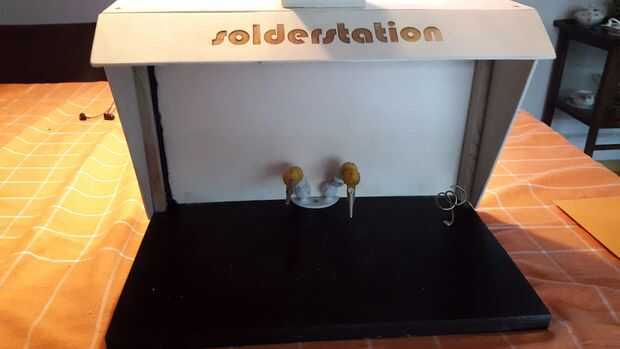 Las cosas que pongo en este solderstation es una tira de LED para tener una visión clara en el objeto que desea soldar. El ventilador y la tira de LED se sueldan juntas y se conectan a una batería seca con clips.