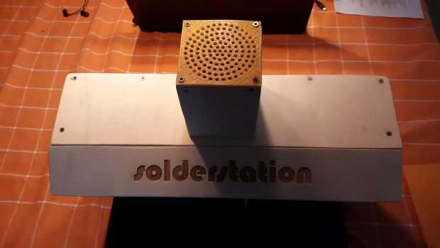 Para obtener el nombre '' solderstation'' en la madera utilicé un lasercutter. El diseño fue hecho en illustrator.