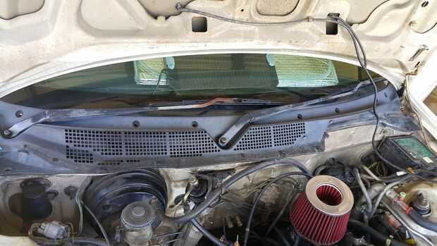 Para la entrada de aire fresco la carcasa necesita una diapositiva parcial arriba sobre el parabrisas al conducto.