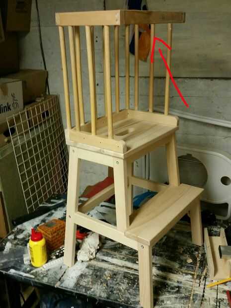 Hacer un carril del protector en la parte posterior para evitar caerse. Sólo Avellane los tornillos y que sean a la vista, por lo que puede desenroscar cuando tu hijo crezca. Ahora está terminado y disfrutar de cocinar y hornear con sus hijos míos lo ama, lo harán suyo.