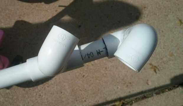 * Utilizar el cemento de PVC según las instrucciones y piezas nuevamente juntos (torciendo y sosteniendo a las marcas de ángulo anteriores).