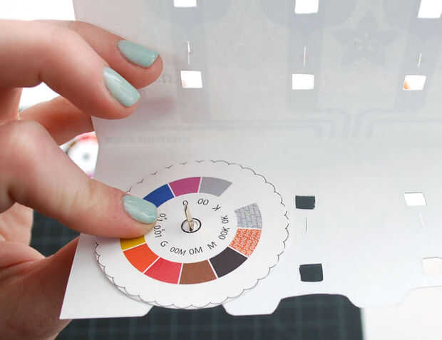 Perforar un sujetador de papel a través de una pestaña en un lado del soporte y a través de una rueda. Se puede montar el Resistor ayudante con cualquiera de los lados como el "frente", pero pensamos que usará el lado 4 bandas más a menudo.