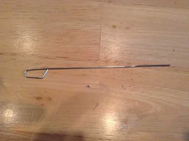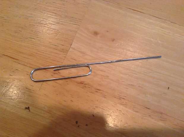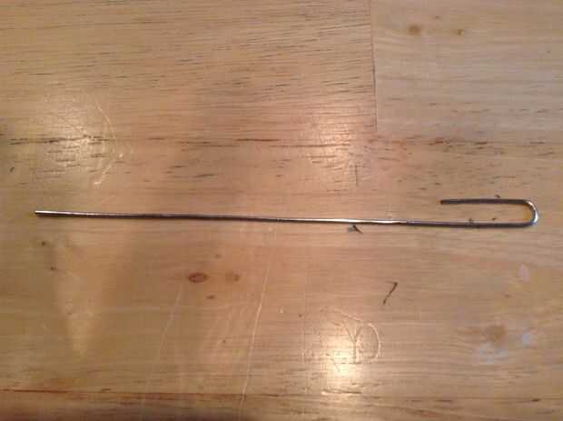 Paso 3-curva otra porción muy pequeña en el extremo opuesto a un ángulo de 90 grados, el clip debe recaer sobre la nariz y doblada la cola.