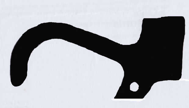 manejar de lado sobre un pedazo de papel y dibujó un bosquejo áspero de lo que quería el gancho para parecerse a. Aproximadamente dibujé en el agujero - en este momento no era importante que ser un círculo perfecto, justo la necesitaba allí para la colocación.
