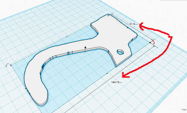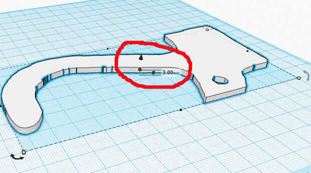 La distancia entre los dos soportes en el mango es de 10mm. Quiero el gancho para encajar en allí pero no super apretado, así que voy a hacer 9mm de espesor.