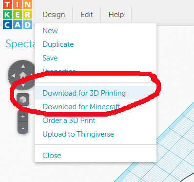 Haga clic en las piezas para el pin y presione la tecla de borrar (no te preocupes - no han desaparecido para siempre). Esto dejará sólo el gancho. En la esquina superior izquierda al lado del logo de Tinkercad, haga clic en diseño y luego la opción de descarga para impresión 3D. Un cuadro aparecerá dando 4 opciones de tipo de archivo. Mi impresora usa obj o stl, así que selecciono siempre stl. Al hacer clic en un tipo de archivo, aparecerá otro cuadro de que le da la opción de guardar el archivo. Haga clic en aceptar y guarde el archivo.
