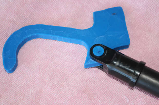 Cómo imprimir los archivos son hasta usted. Originalmente, imprimí el gancho en PLA con una mayor altura de la capa y sobre relleno de 50%. Esto resultó satisfactoria como el gancho comenzó a desarmarse con el uso. Tenemos que este gancho de la abrazadera de la manija del taladro y lo de la reimpresión. La segunda vez, con una altura de capa de 0,1 mm y 100% relleno usé ABS. Esto tardó un poco más para imprimir, pero el resultado final fue un gancho mucho más fuerte.