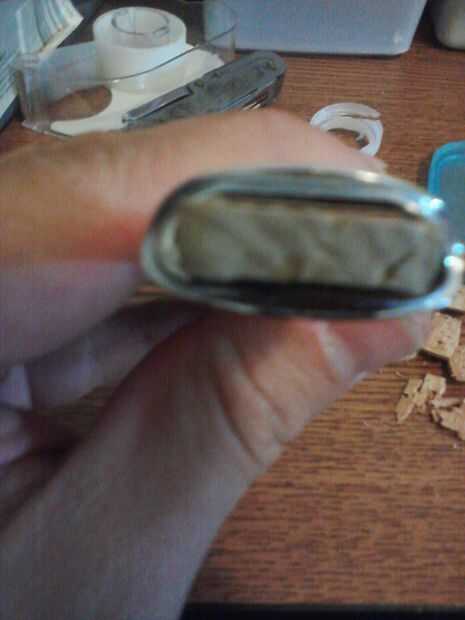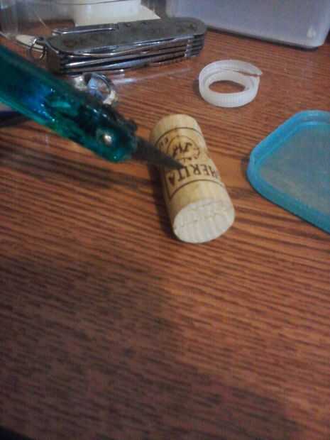 Usando un cuchillo xacto, cortó un trozo de corcho y luego cortar para que quepa en el espacio vacío en el mango de la maquinilla de afeitar,