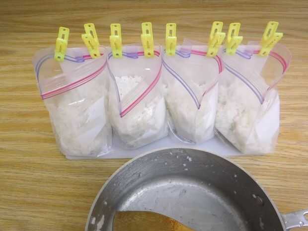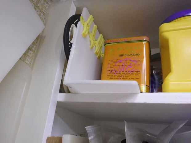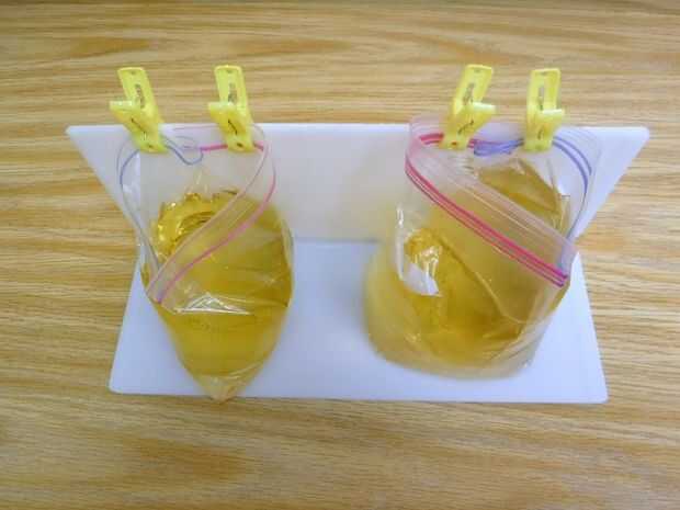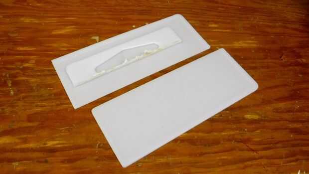 Que asierra de la manija y dividir el resto del tablero por la mitad. Entonces yo con cinta los bordes más gruesos juntos dentro y fuera. Esto hizo fácil Perfore orificios piloto de 3/32" a través de dos piezas en los mismos lugares. Yo countersinked el exterior de los agujeros y aburrido con un 9/64" poco dejó el deslizamiento de los tornillos a través de. Atornillar las piezas juntos cuidadosamente me dio un ángulo sólido y estable sobre el mostrador. La estación de servicio Zippie trabaja con bolsas de pinta y quart. Es llenar con algún líquido para arroz fácil y rápida. Entonces puedo desinfectar con lejía y almacenar fuera del camino.