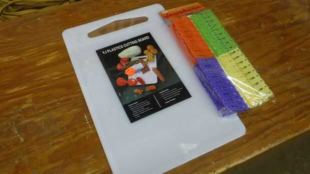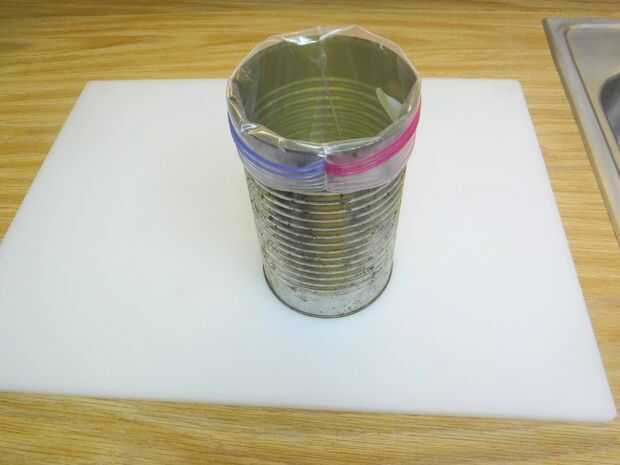 Problema #1: llenado zippies. Se necesita una mano extra para llenar bolsas de almacenamiento de alimentos, así que me di a 2 adicionales. Esto empezó con un viaje al mercado. Compré una barba de polietileno mediana por $2,50 y un paquete de pinzas de plástico para un dólar. Añadir al valor de un dólar de #6 x ½ "tornillos de ss tenían en mano.