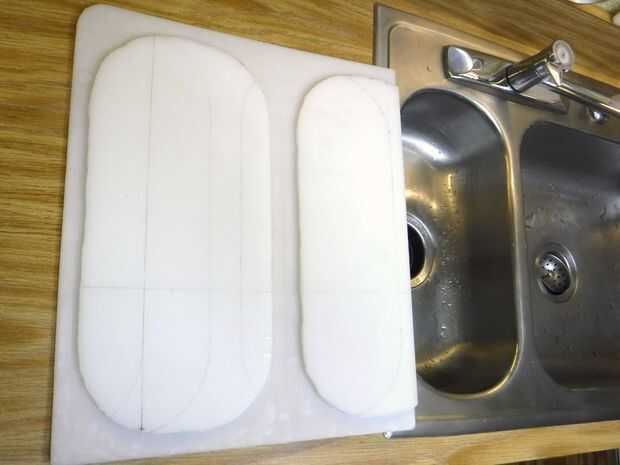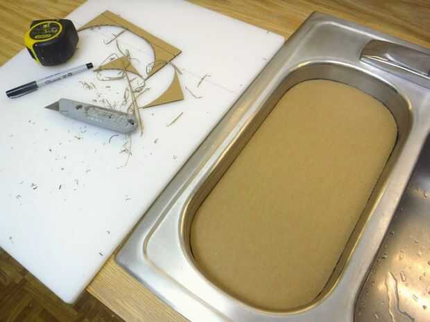 Corté un patrón de cartón que calcen bien en el lado del bien y remonta dos veces en el fondo de un bonito nuevo ½" tabla para cortar. Con un ¾" conjunto de bits para cortar 9/16" profundidad, envían el área fuera de los patrones. Ya que no muestra este corte, que libre se. Redondea las esquinas, cortadas todos lo creep y cayó en el fregadero.