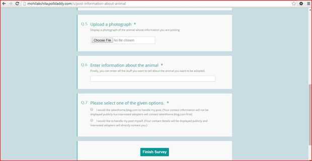 Contestar todas las preguntas en el formulario y haga clic en el botón Finalizar cuando haya terminado. Se mostrará un mensaje (como se muestra por encima de la foto), que confirma la presentación de su información. Se harán todos los intentos de publicar esta información en el blog tan pronto como sea posible.