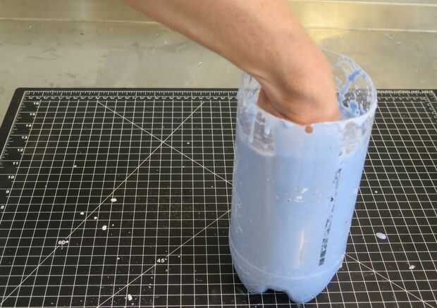 Obtén la mano ahí! Una vez que has iniciado la mezcla, el alginato es la creación. Para mí, mi mano se cansaron después de un poco, usé el lado de la botella para que circule hacia arriba. Para ver si el alginato se establece, esperar 5-10 minutos y meter para ver si siente esponjoso pero sólido. Si es así, puede iniciar menear los dedos libres y llevarlo a cabo. Usted puede hacer ir más rápido usando agua tibia y mantener un polvo más alta proporción de agua.