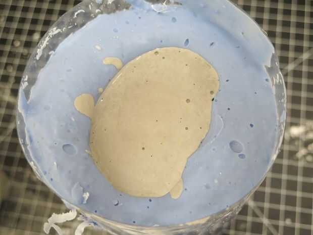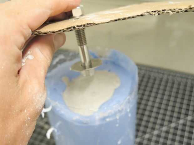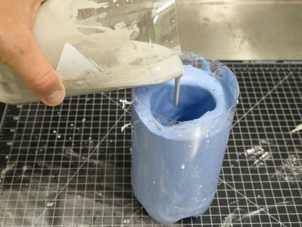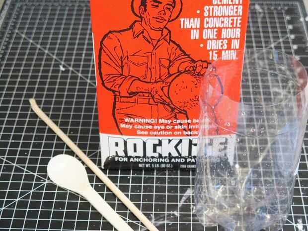 Cucharada para arriba algunos concreto polvo (me gusta Rockite porque es rápido) y añadir agua. Otra vez usted va para una consistencia de batido. Vierta en el molde, asegurándose de pasar tu molde, dirigiéndola para hacer seguro cualquier aire puede escapar de voladizos (como donde mi dedo puntero rizado en este molde).