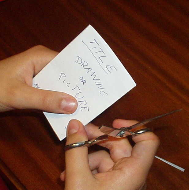 Con las tijeras, cortar el borde superior y el borde de proa de mini libro, como se muestra a continuación.