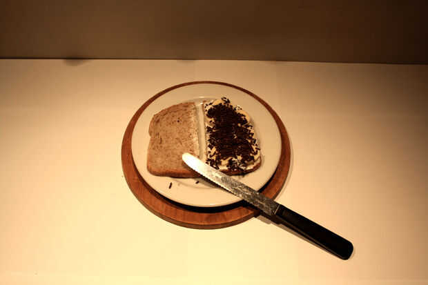 Nu snij je je boterham en 2 mooie gelijke delen.