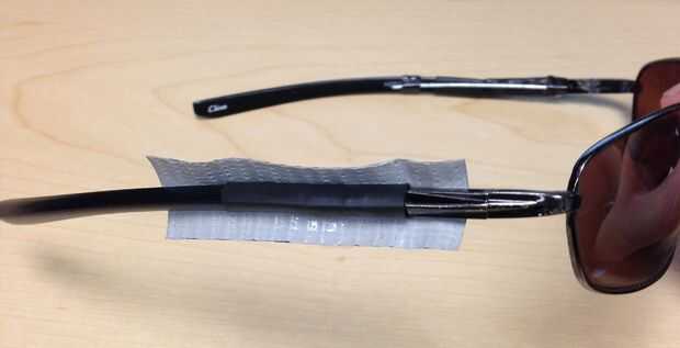 Habría trabajó bien durante unos meses, había aplastado el clip, primero. Pero, realmente, cinta del conducto, aunque fresco, es demasiado brillante y mis gafas parecía aún más gueto que con el calor tubería del encogimiento.