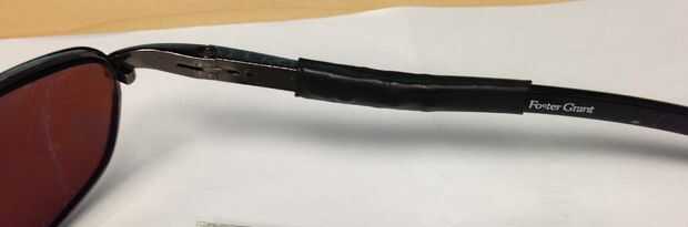 Así pues, partí otra vez para arreglar mi amados baratos gafas de sol. Sabía que necesitaba apoyo de los brazos rotos y sostener más bien que el tubo termocontraíble podría. Por lo tanto, he utilizado un clip enderezado y cinta negra! Estaba en el camino correcto, pero...