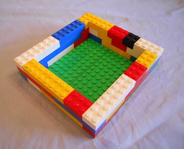 Trabajo de LEGO para crear formas de molde. Formas diferentes se pueden construir con Lego y durante el proceso de verter el moldeado compuesto si el molde tiene que ser un poco más tu simplemente añadir una capa extra de Legos a la forma.