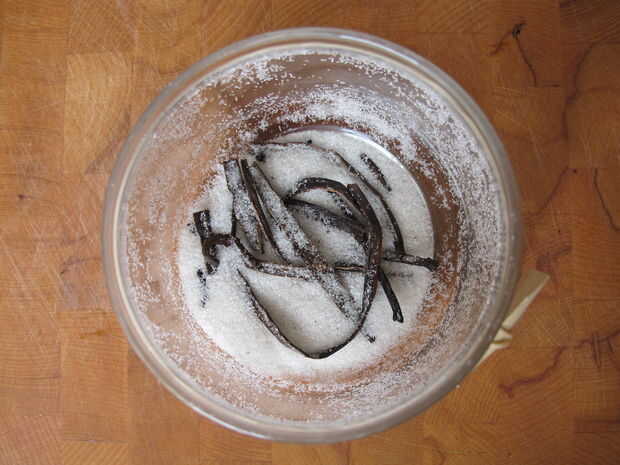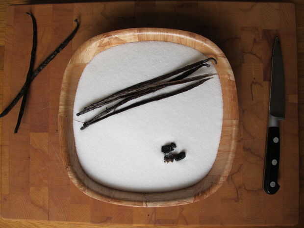 Es esa época del año para hacer "Azúcar de la vainilla" para la temporada de Navidad galletas!!!!!!Paso 1: ingredientes 4 tazas de azúcar, (yo uso Domino® granulado puro azúcar de caña)2-4 vainas de vainilla (yo uso habas de Madagascar, de excel
