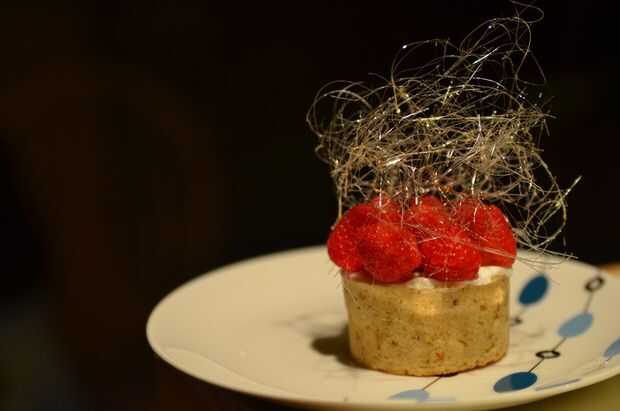 Mina apilados en una tarta de frambuesa cal con una costra de almendra y estaba delicioso!