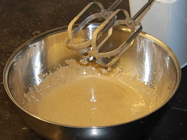 Mientras tanto batir 4 yemas y el azúcar morena en un recipiente aparte hasta que esté esponjoso.