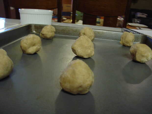 Lugar bolas de 2 pulgadas aparte en placas sin enmantecar para galletas.