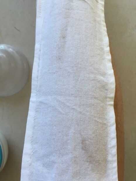 Pegar en esta capa la tira de paño, ligeramente estirada sin arrugar, dejando el extremo inferior libre 1cm.