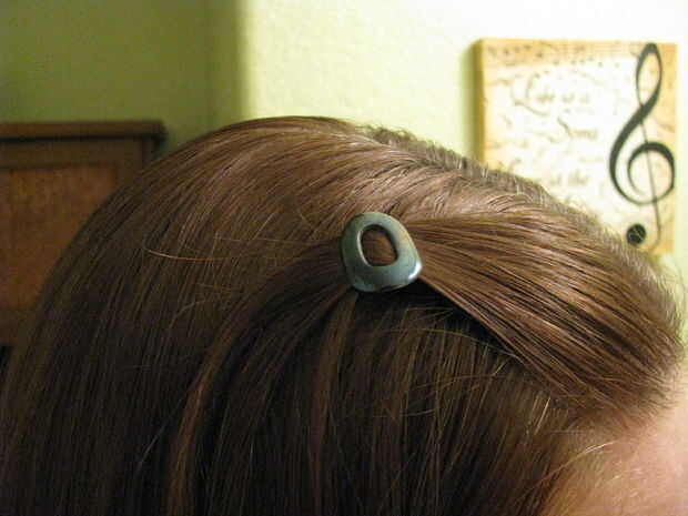 este es mi primer intento en accesorios para el cabello. Cada uno se hace de una arandela de acero de 5/8, clavo y clip.