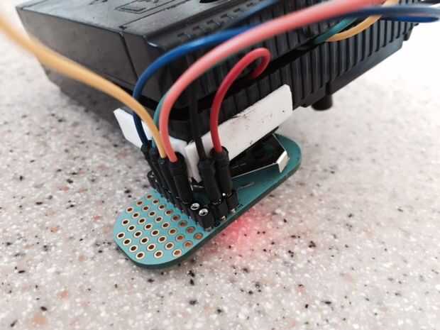 Quiero usar el LED para mostrar lo que la Junta es, por lo que no trabajar para tenerlo cerrado dentro del controlador. Así que para mis propósitos trajo los cables por el lado del controlador y en el grano, fijado a la parte delantera con una escuadra de montaje.