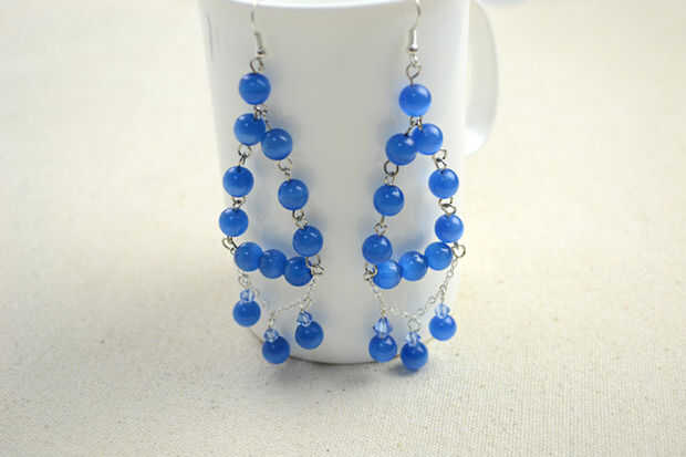aquí es otra joyería que hace uso de cadenas.Materiales y herramientas:Pernos de ojoAnillasdiámetro 2 x 0,6 bolas de plataAbalorios de cristal de 2 x 1,2 cm diámetro6 granos de espalda plana de plataCadena2 cables de oídoAlicates de punta redondaAlic