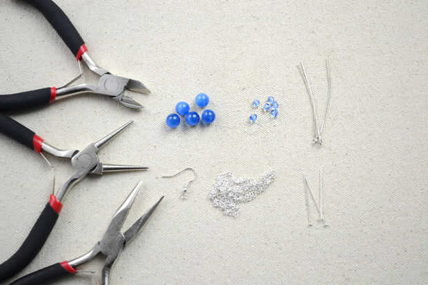 aquí es otra joyería que hace uso de cadenas.Materiales y herramientas:Pernos de ojoAnillasdiámetro 2 x 0,6 bolas de plataAbalorios de cristal de 2 x 1,2 cm diámetro6 granos de espalda plana de plataCadena2 cables de oídoAlicates de punta redondaAlic
