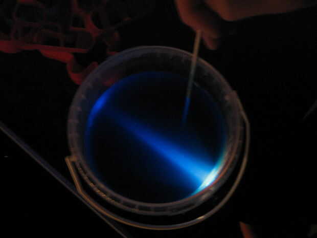 Primera idea fue hacer cristales de sulfato de cobre ( así que me empecé a hacer cristales, pero yo no. :( Después de dos días sólo tenía algunos pequeños cristales y 2oz de ese extraño líquido azul ves en foto de la izquierda...