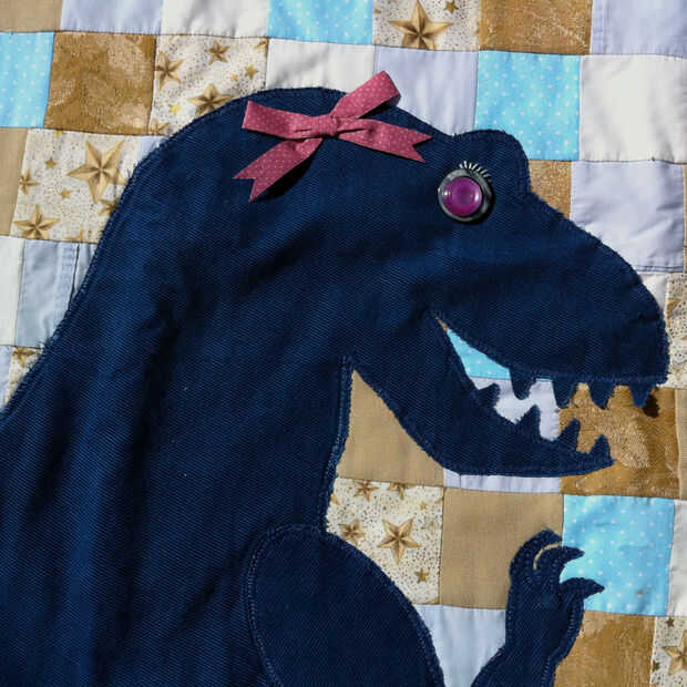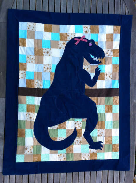 tela necesitada: 2 1/4 yardas de muñeca impresa del panel, 1/4 Yarda verde (frontera), 1/3 yarda color de rosa (frontera), yardas de 1 3/8 azul (frontera y Unión),impresión de frontera 2 1/2 yardas, 6 yardas forro y 81 "x 101" guata (de algodón