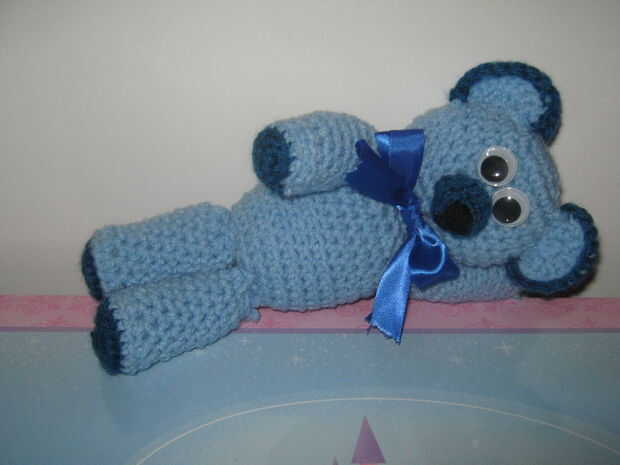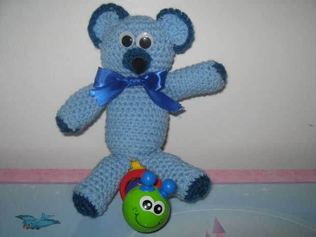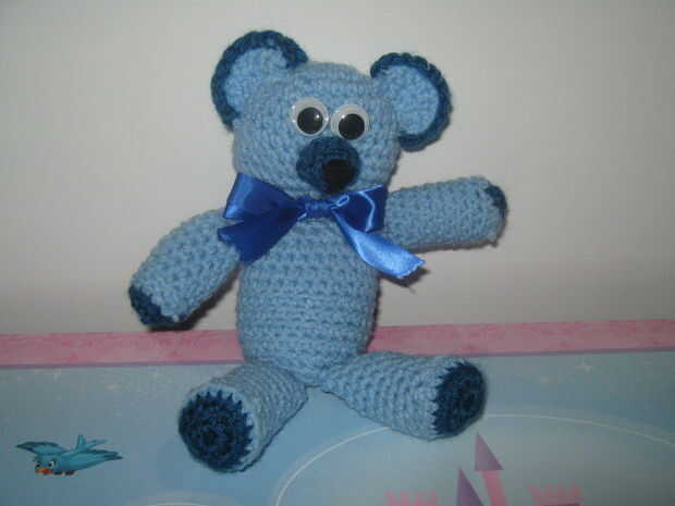 este oso de peluche es modelada de los vieja moda ganchillo ositos mi abuela solía hacer. Esto fue en el día cuando no era todo sobre amigurumis pequeños critters con "ojos de seguridad" pero donde todo era de ganchillo o bordado, los bichos er