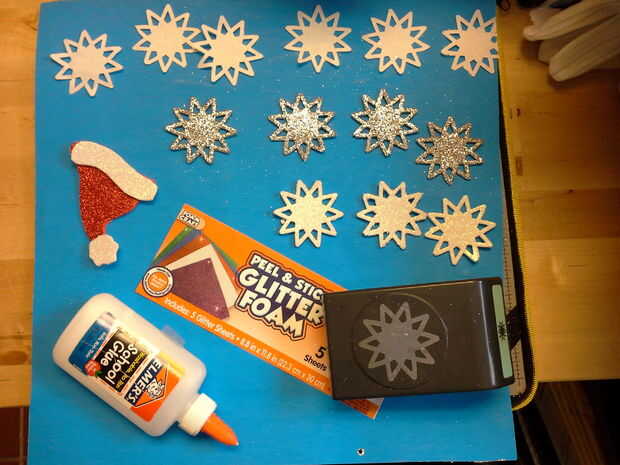 Utilice perforador de copo de nieve grande para hacer copos de nieve de papel blanco y purpurina plata y blanco espuma chapas.