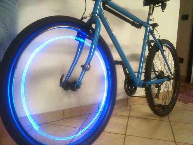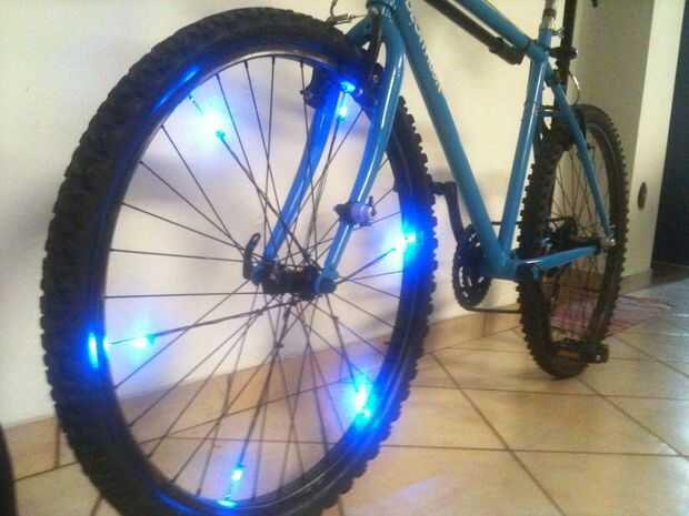 Básicamente a asegurar 6 LEDs azules a los rayos de la rueda.
