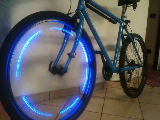 Además ya que un amigo mío tiene una MTB naranja, me pidió que esto a su bicicleta con 6 amarillo o rojo brillante LED por rueda.