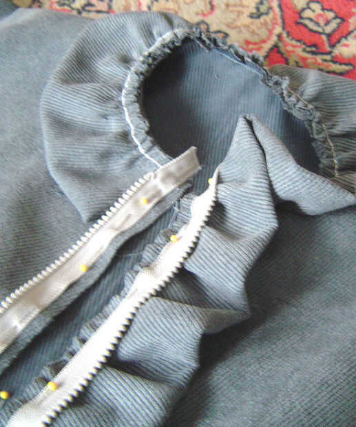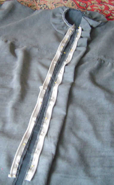 La cremallera de la posición donde quieres que inicie y se detenga.  Hilvanar en su lugar.