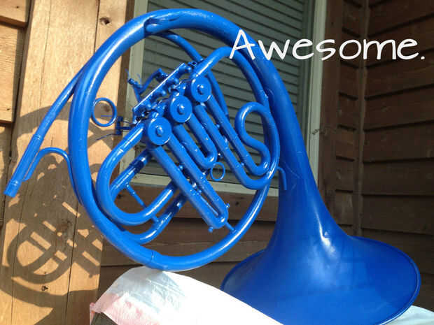 [Nota: esto es para los propósitos decorativos solamente. No sólo sería un cambio del cuerno de la pintura su sonido, pero si la pintura contiene un cable, sería francamente malsano para jugar un cuerno pintado de esta manera. Si usted quiere * juego * una trompa azul, usted necesitará hablar con profesionales.]