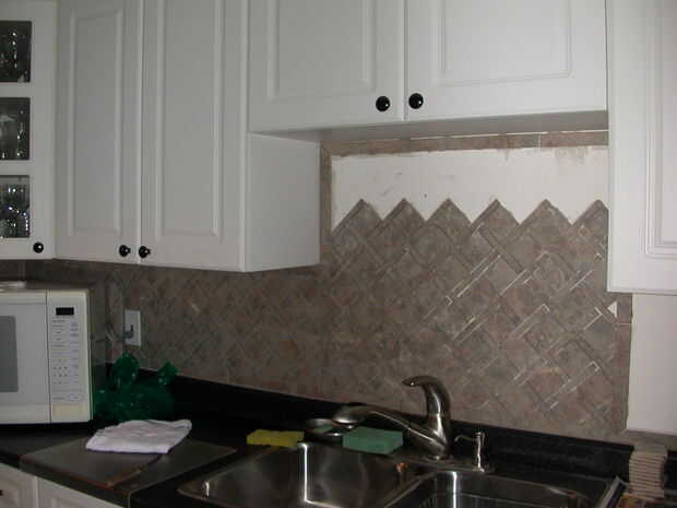 2 x (anchura de Plaza + ancho de la línea de lechada) + cesta de tejido ancho.Por qué las imágenes se concentran en la parte posterior del fregadero es que no tomo fotos de las otras áreas hasta que el trabajo estaba hecho.