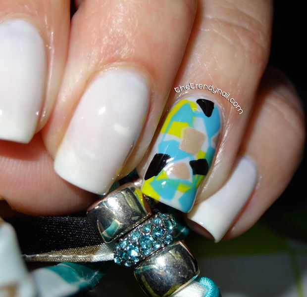 Hola bellezas ♡Estoy nuevamente con otro diseño de uñas.Paso 1: Pinta las uñas Primero pinte su dedo meñique y pulgar con capa negra. Luego pintar su dedo anular y puntero con bata blanca y el dedo corazón con la brillante capa de pintura.Paso 2: Dib