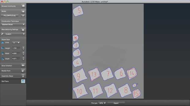 make 123d creó los planes que tiene que ser lasercut. Así que guardar el archivo y pasar a Illustrator. Como se puede ver, 123d make no coloca las piezas en una muy buena forma así que siempre paso un par de minutos les reorganizar en Illustrator para que guardar tanto material como sea posible.