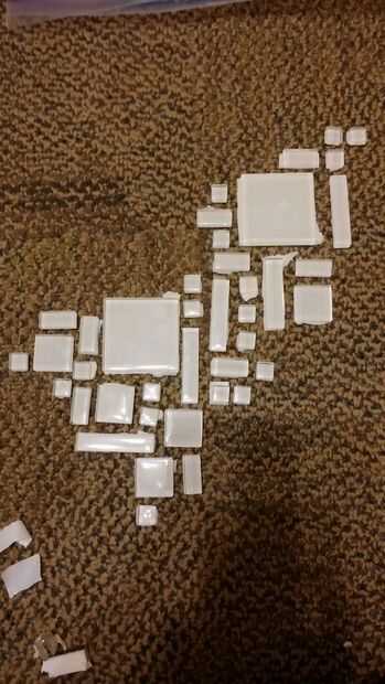 Comencé este proyecto colocando mis fichas en la posición que yo quería. Aquí es donde el protector de la hoja entra en juego. Coloque sus fichas sobre el protector de la hoja, dejando huecos entre ellas. Cuando sus azulejos se colocan cómo quiere, pegar en el protector de la hoja con pegamento caliente o pegamento estupendo. Corte el protector de hoja alrededor de las piezas de azulejo para obtener la forma del collar.