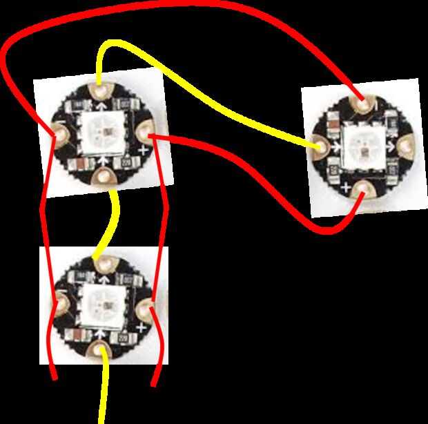 Puede girar los píxeles como el cuadro incluyen espectáculos. Sólo asegúrese de que si fueras a enderezar los píxeles en una línea, las flechas apuntan la misma dirección. Al llegar a su último píxel, no conecte el pin de datos a la Junta de Gemma. Esta línea termina con el último pixel.