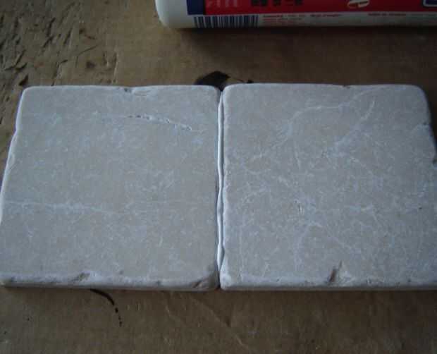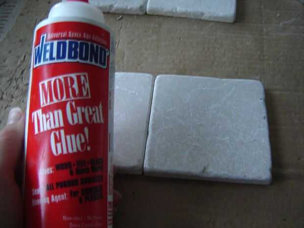 • El primer paso es pegar los cuatro conjuntos de dos azulejos juntos a lo largo de sus bordes. Asegúrese de que los lados se alinean uniformemente. Deje que se seque completamente, el pegamento que usé tiene 24 horas para curar.