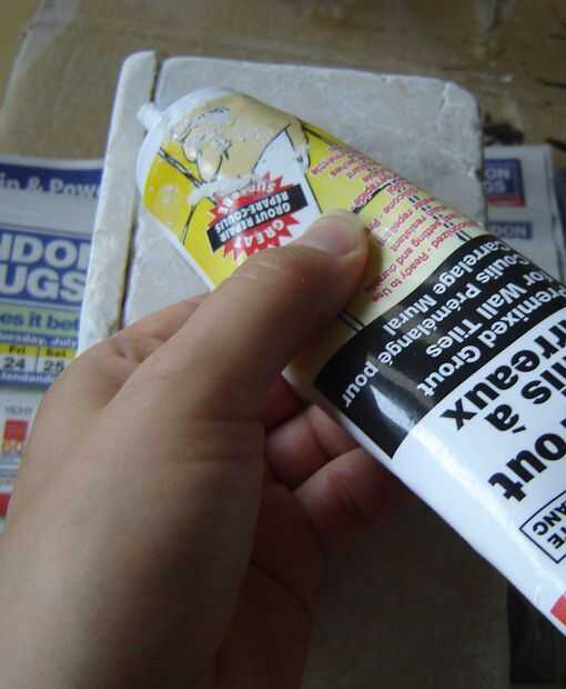 • Ahora que tienes la caja de baldosas pegada aplica lechada a las juntas entre las partes.