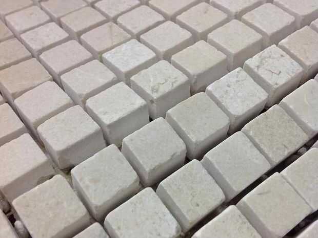 Interminables filas de baldosas! ¿Qué hacer...? Tiempo para cortar las tiras de azulejos para hacer un número!  Cuadrados de azulejo que son 5/8 "x 5/8" o un trabajo más pequeño mejor.