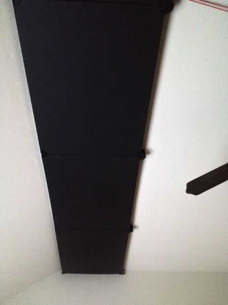 Ahora es el momento de arrojar tus estrellas en órbita! Empezar a colgar tus estrellas en el techo. Utilicé cinta scotch de doble cara (el tipo esponjoso) para colgar mi "perchas". Y el ventilador será su peor enemigo!